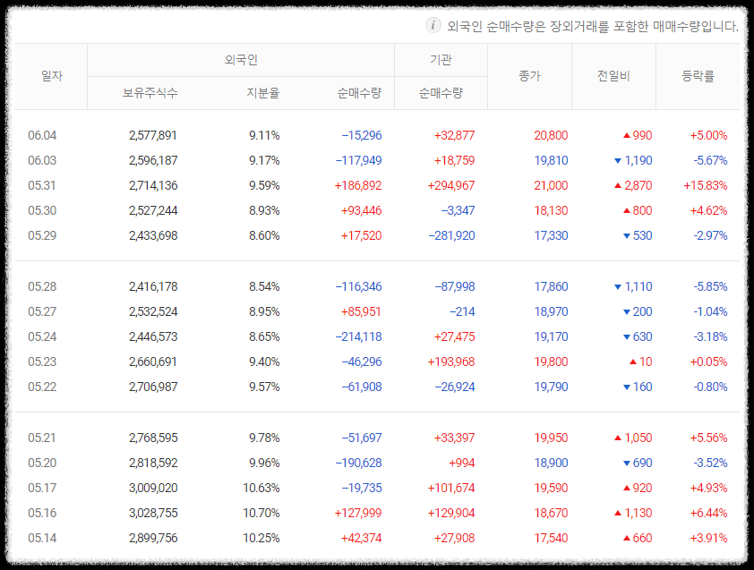 그렇기에 개인 투자자는 기관이나 외국인 세력을 따라가며, 세력이 약한 상황에서도 어떤 것을 사고팔아 이익을 낼 수 있습니다. 최근의 트렌드는 외국인 매수보다 기관 투자자를 따르는 것이 많은데, 이는 외국인의 매수가 허수일 가능성이 있고 개인의 단기 거래가 기관과 유사하기 때문입니다.