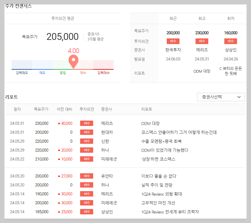 코스맥스 목표 주가