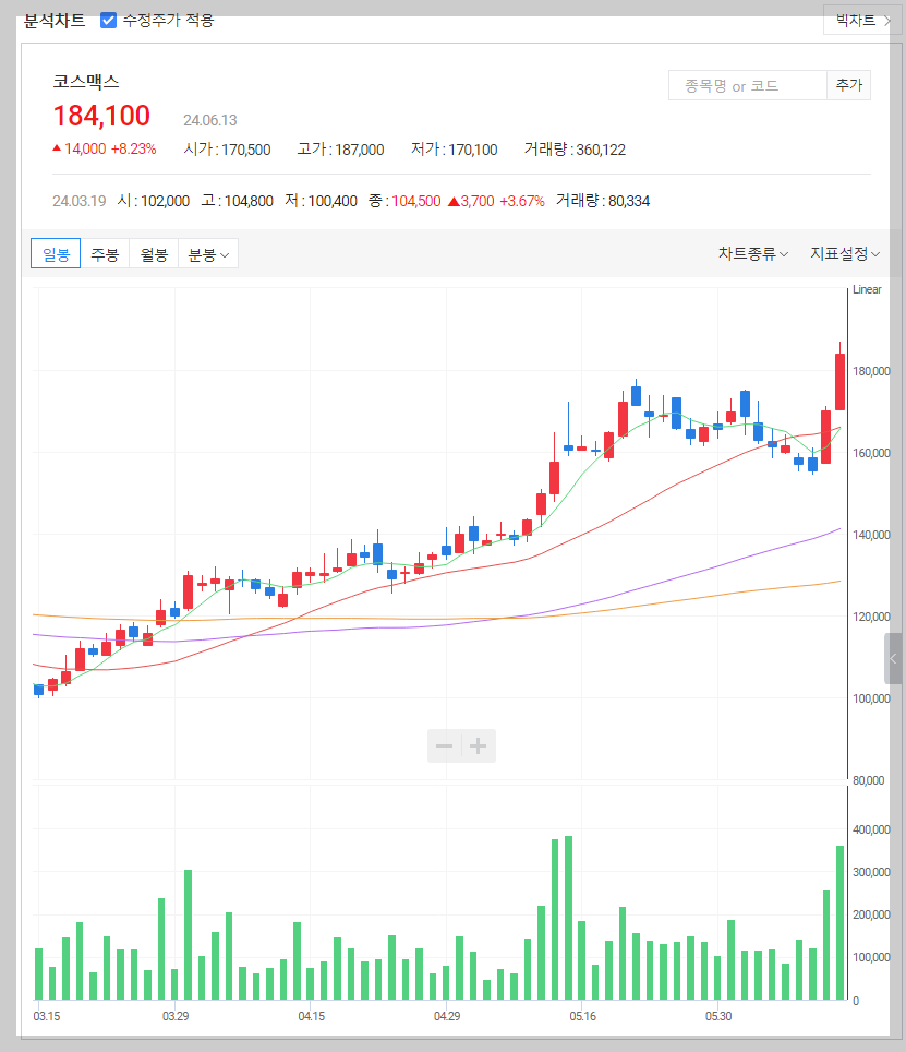 | HLB 주가 전망 목표 주가 매매 동향 주가 분석 가치 분석 (0) | 2024.06.13 |